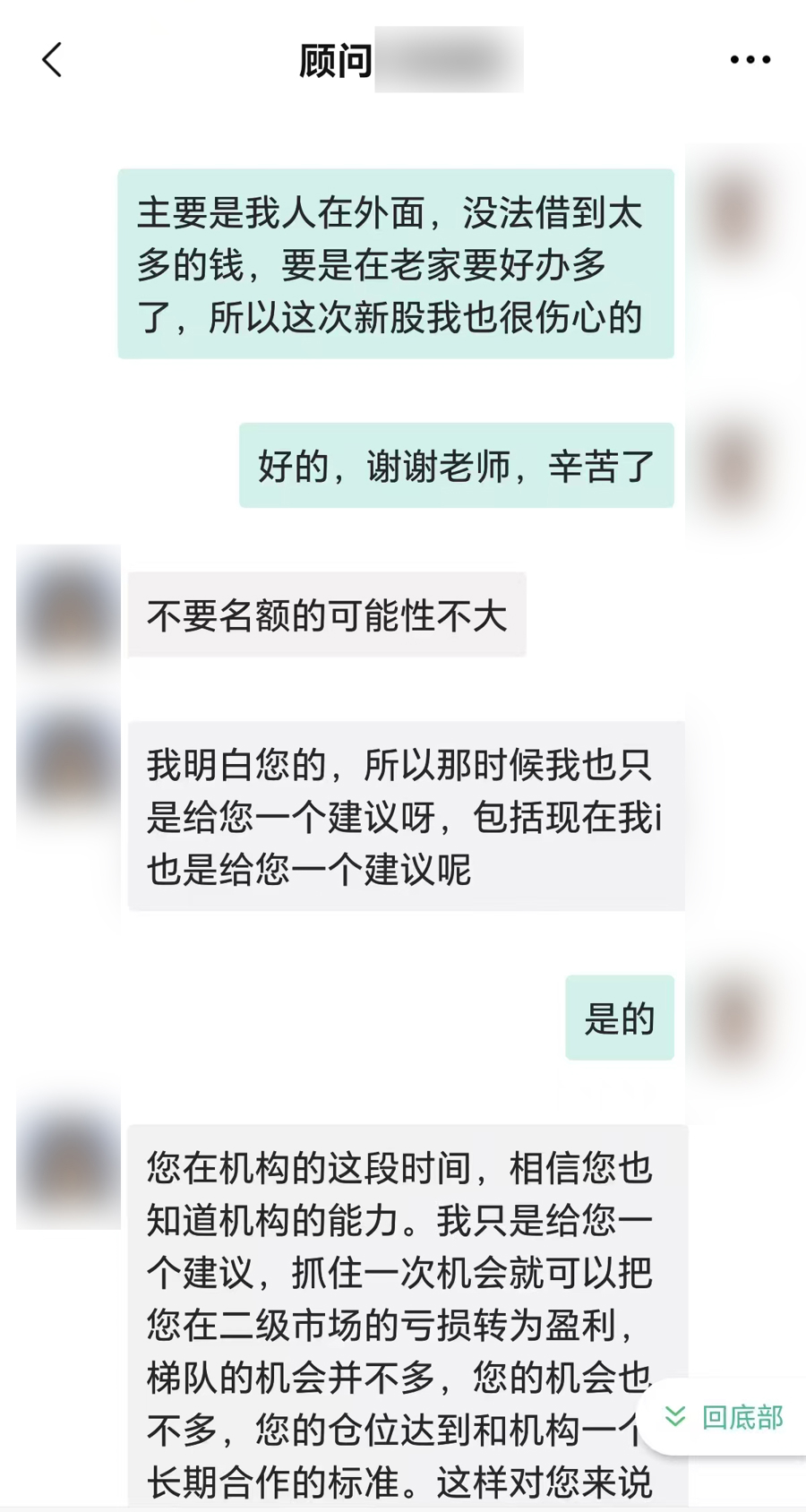 “理财顾问”与被害人聊天记录
