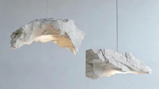 展出的学生作品现场,刘倩希同学的“蚀石·拾时”以海蚀地貌灯以海蚀岩石的自然肌理为视觉核心,将岩石被岁月侵蚀的形态凝于灯具之上,借海蚀地貌被侵蚀渐次消逝的意象,诉说The Lost Beauty of Nature的主题;“拾时”则让流逝的时光以岩石灯具为载体被触摸、被留存,让自然消逝的美有了具象的栖身之所。
