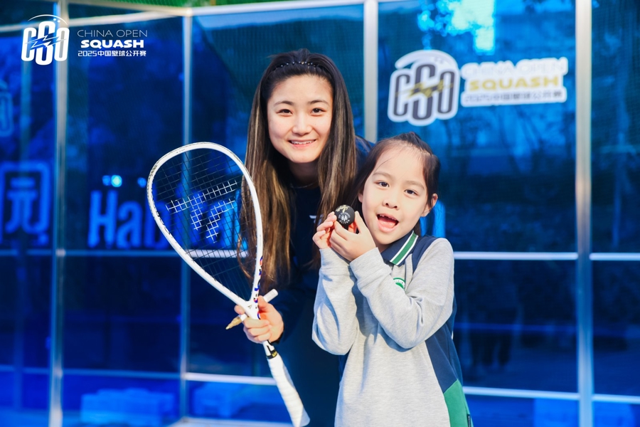 在问答环节中,面对大家的踊跃提问,她也是知无不言,和大家分享了自己在入门建议、能力提升和备赛心得方面的独到见解。现场小朋友激动地表示,通过和世界名将的面对面交流,一方面增加了自己的壁球专业知识,另一方面也进一步感受到了壁球运动的独特魅力。
